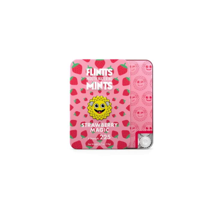 Flintts are quick-dissolving mints that make your mouth water in order to combat Dry Mouth. Saliva includes minerals that keep your teeth hard as well as digestive enzymes that clean the surface of your mouth. Over time, Dry Mouth can cause serious oral health issues. Flintts also make your mouth sparkle, which is a pleasant electric sensation. They’re sugar-free, vegan, non-GMO. And there is no plastic in their packaging. Intense sparkle and powerful, long-lasting mouthwatering effect. Strawberry Magic has a Mediumish sparkle and mouthwatering effect. Creamy, Jammy, Ripe, and Trippy. High Spring Vibes. Basically, these mints will make the mouth wet for better playtime with any way a wetter mouth can make things more fun!