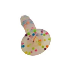 The original “handle” of the Jollie has been removed and stimulation bumps added to the newly formed shaft. It’s flared and textured base works well in hand or harness and the addition of a hole in the base for a bullet vibe makes this high quality toy a great addition to anyone’s toy box.