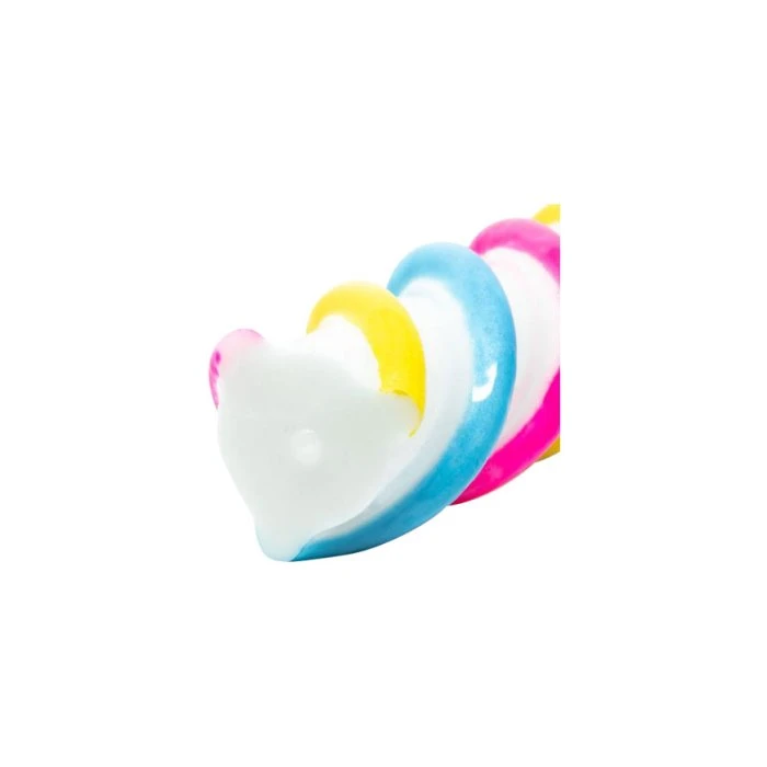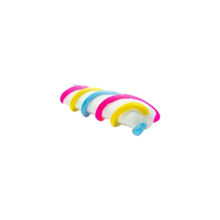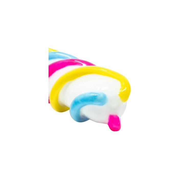 White with accents in pink, yellow and shimmering blue. The three colorful ropes twist beautifully around this candy-shaped toy. This toy is for folks who like texture because each rope is raised 5mm (0.2 inch) high and create a very clear massage element that work best with rotational movement or the classic “up-and-down”. The Marshmallow is made of soft silicone that lives up to its name.